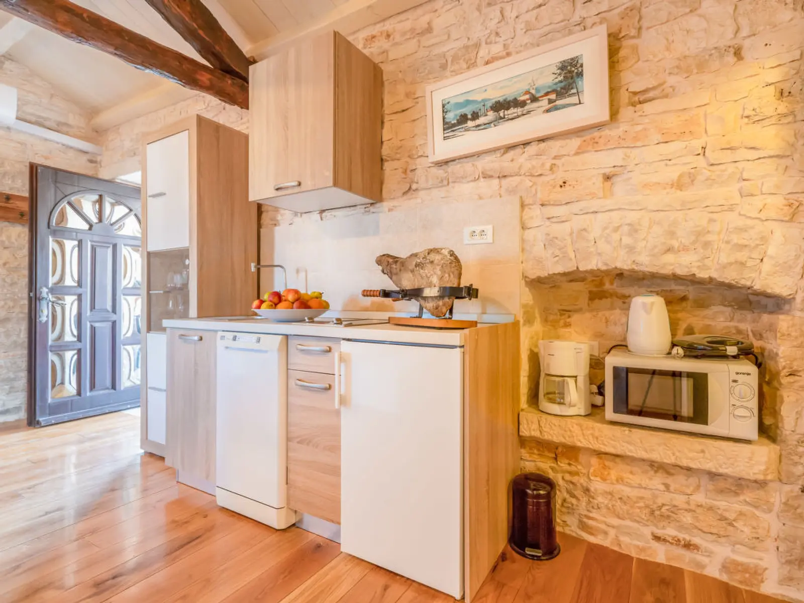 Fully Equipped Kitchen: The open kitchen allows you to prepare your own meals and is fully equipped with modern appliances, including a dishwasher, 2 ceramic glass hobs, microwave oven, toaster, kettle, and electric coffee maker.